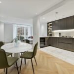 Crafted to the highest of specifications with a spacious and open plan living space featuring a luxury Kitchen with integrated Küppersbusch appliances, principal bedroom with private balcony and en suite shower room, second double bedroom with with built in dressing room and en suite, third double bedroom, luxury rainfall shower room. The apartment further benefits from engineered timber flooring, comfort cooling and underfloor heating throughout.
